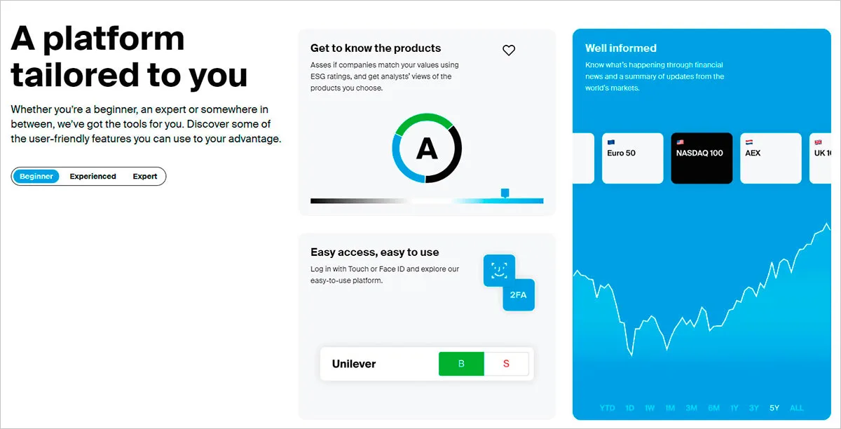 The first screenshot showcases Degiro’s emphasis on personalization and accessibility. It highlights features like: