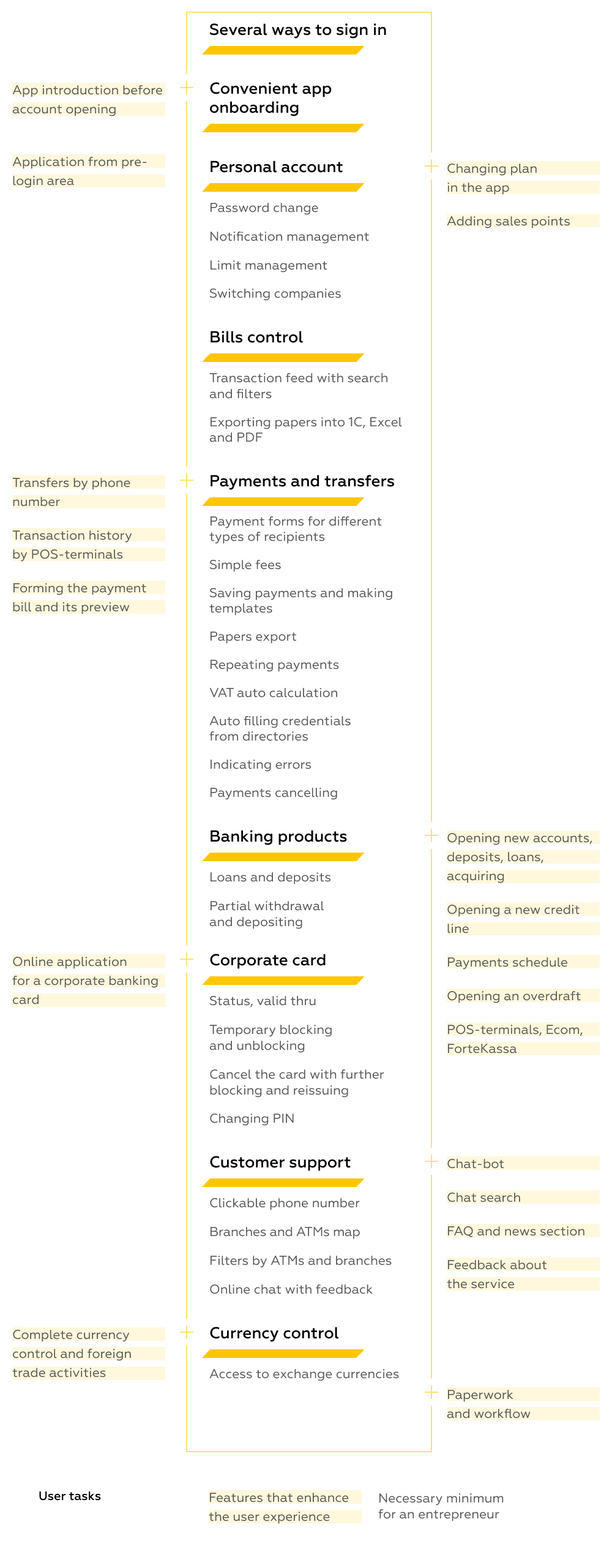 ForteBank business clients that already have internet banking experience are ready to use the app with basic features for fast access to accounts and products. The customers of the more digitalized banks need features that expand the possibilities of running businesses in mobile-only mode.