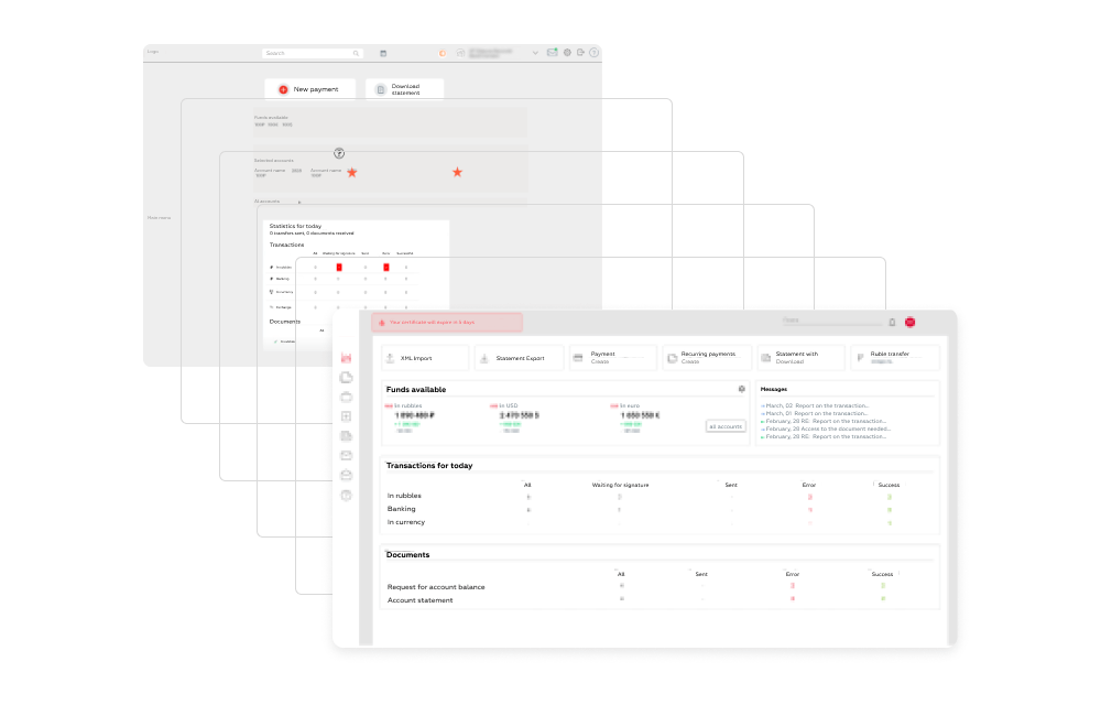 It was essential to consider that the client’s users were specialized professionals in finance departments, treasuries, and accounting. Since the project did not include in-depth user interviews, we referred to the results of the Digital Corporate Banking Rank. The research materials on online banking for medium and large businesses included ready descriptions of user role models from large businesses, as well as analyses of their needs and user scenarios. This helped us further validate all recommendations against user expectations and tasks.