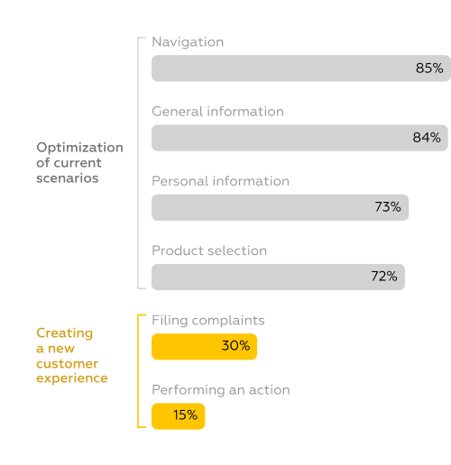 At some point, the market breakthrough was the introduction of quick replies. This increased the percentage of automation and, consequently, customer satisfaction. Quick replies have now become a market standard and are implemented by 9 out of 10 banks.
