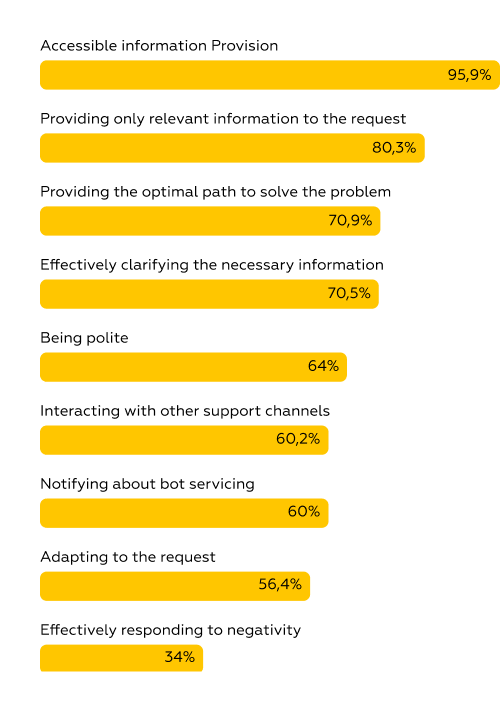 Training the bot on a knowledge base of customer information will also enhance the recognition of queries, making responses more relevant to user requests. Additional confirmation of this trend is the increase in the average market score for the principle "Adapt to the user's query":